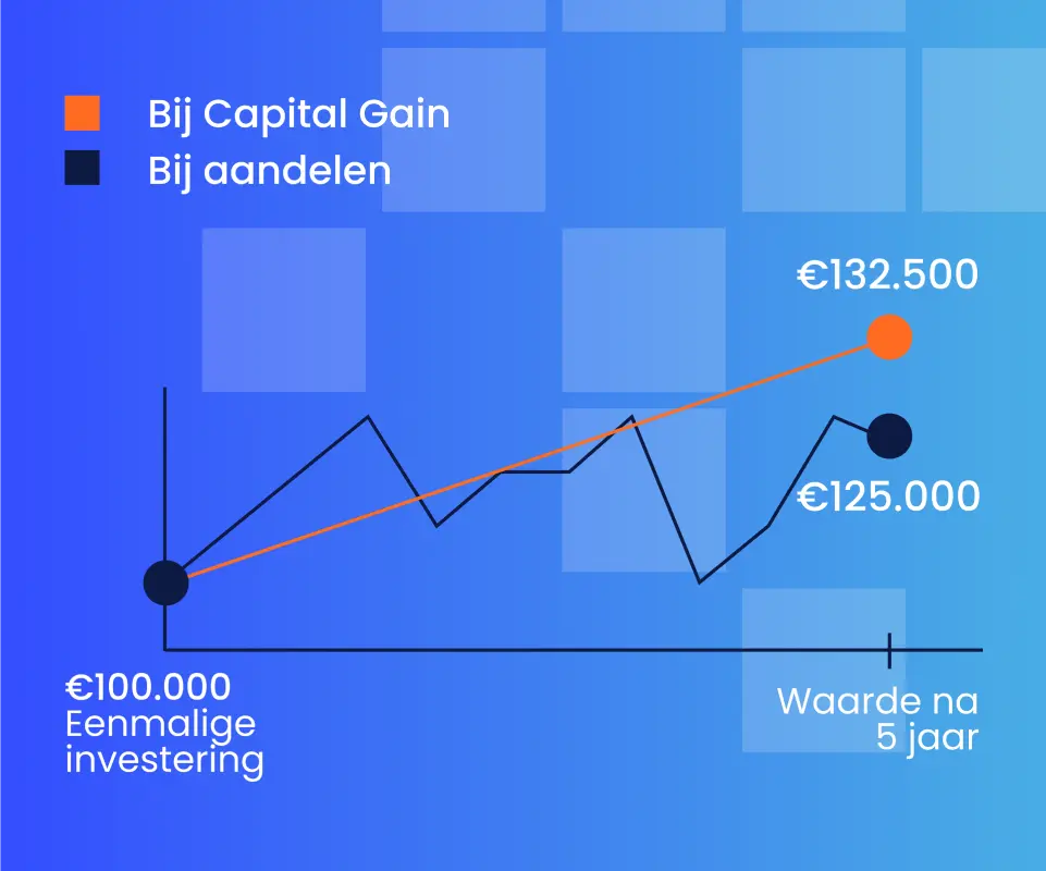Het maximale uit uw vermogen halen? Met Capital Gain profiteert u van een bovengemiddeld rendement met de zekerheid van vastgoed als onderpand. Omdat de rente maandelijks wordt uitgekeerd, ontvang u een goede cashflow over uw vermogen.